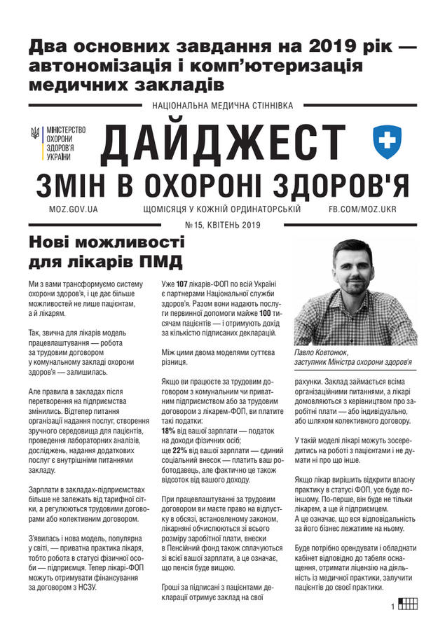 Дайджест змін в охороні здоров’я 15